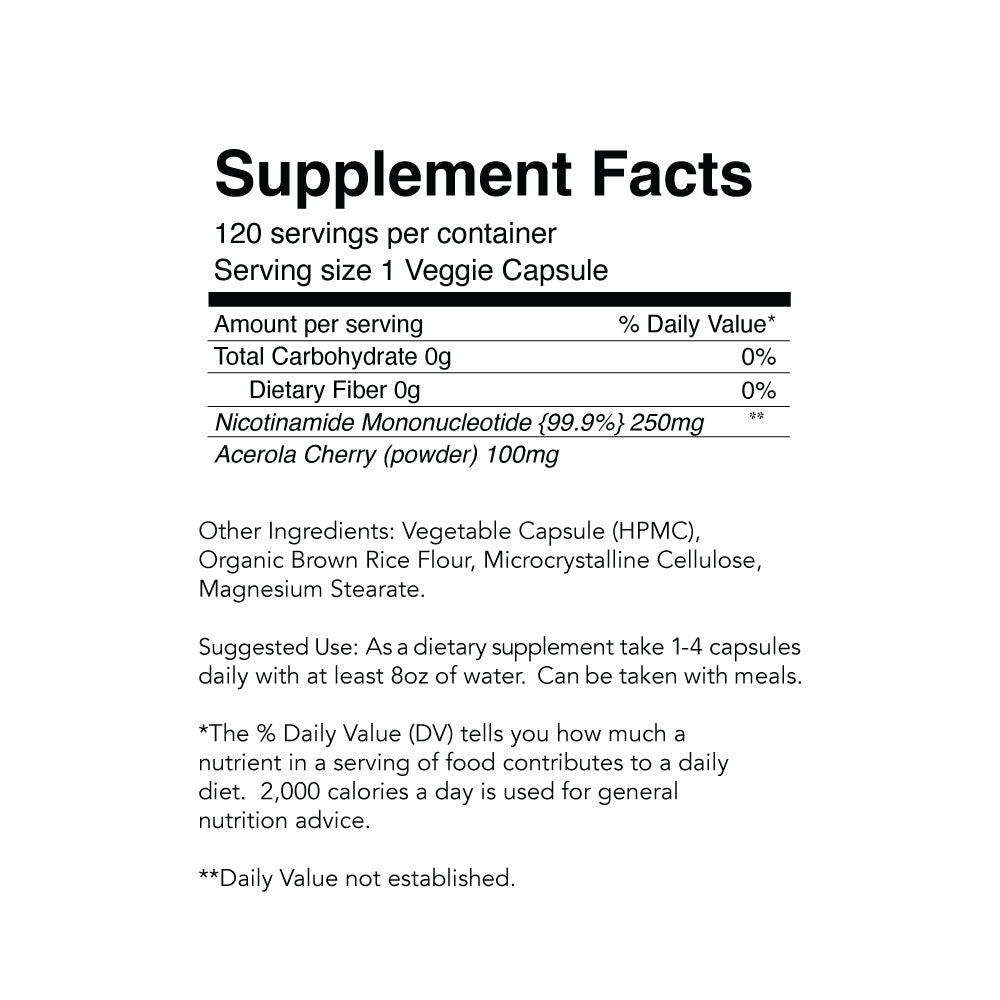 NMN (nicotinamide mononucleotide) is a derivative of the B vitamin, niacin, and helps to transform food into energy by serving as a precursor to NAD+ (nicotinamide adenine dinucleotide). NMN is an age-defier, repairing DNA and preventing cell damage, and may aid in proper cellular function. It may regulate circadian rhythms, boost energy, serve as an anti-inflammatory, decrease stress and improve cognitive function. NMN supports other parameters of health including physical endurance and muscle strength, heart health, insulin sensitivity, gene expression and suppression of weight gain.